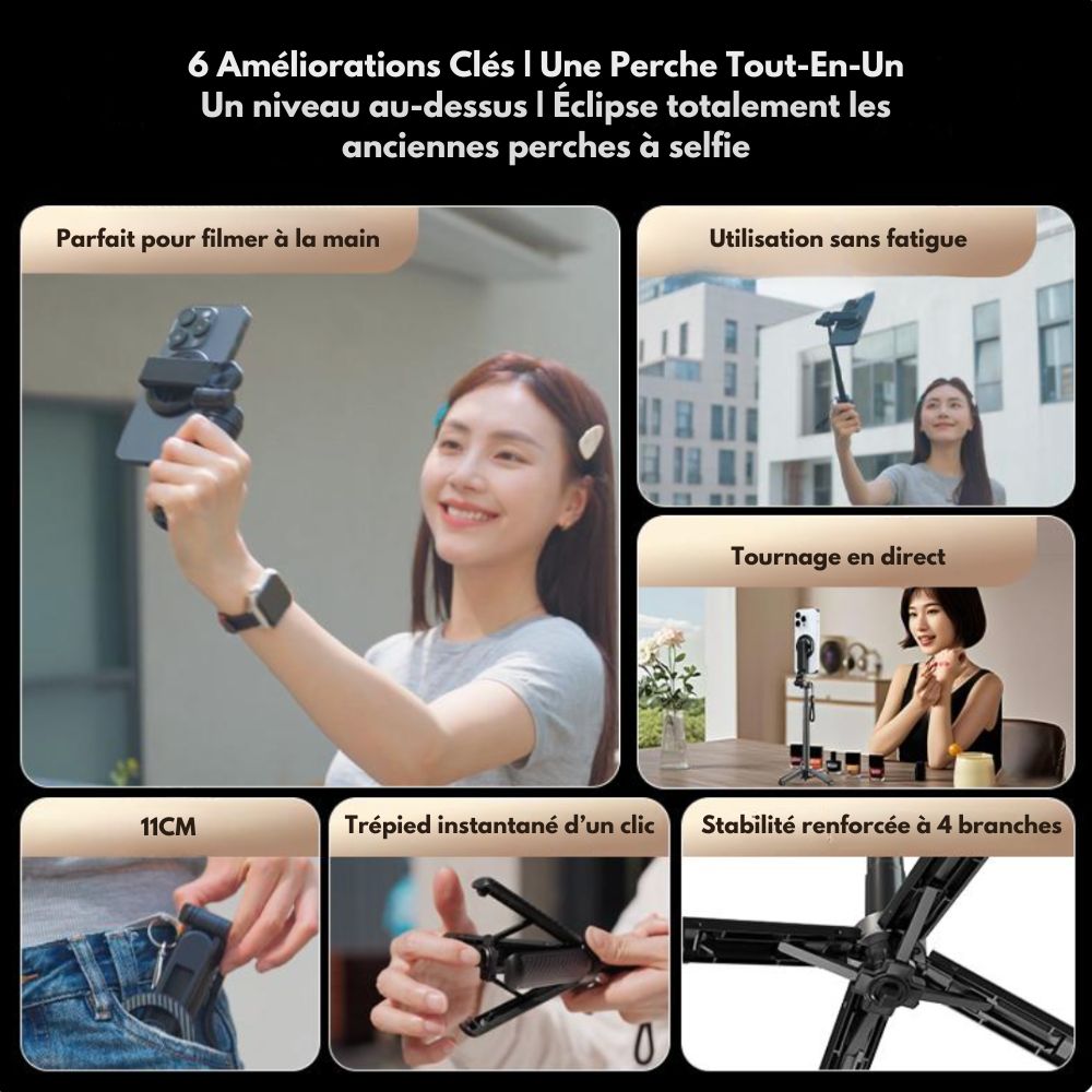 I90 - Perche à selfie magnétique 4-en-1 multifonction 360°